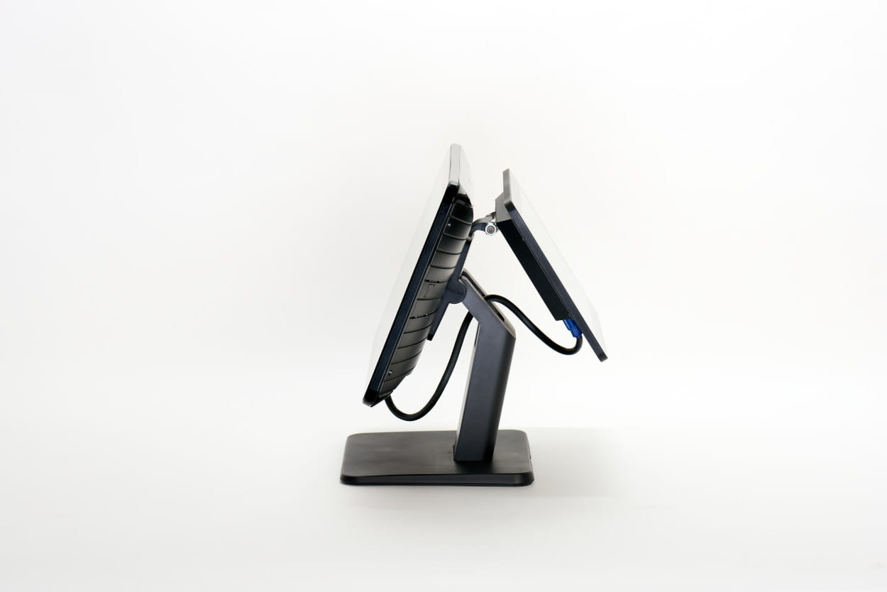 Możliwość instalacji wyświetlacza w pozycji pionowej często wykorzystywana jest na samoobsługowych stanowiskach sprzedażowych i punktach informacyjnych. Zgodność ze standardem VESA zapewnia swobodę instalacji terminala przy użyciu szerokiej gamy akcesoriów montażowych dostępnych na rynku.